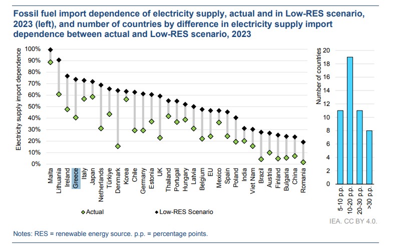 Η ανάπτυξη των ΑΠΕ στην Ελλάδα μείωσε δραματικά την εξάρτηση από εισαγωγές ορυκτών καυσίμων για ηλεκτροπαραγωγή