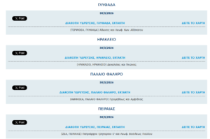 Οι περιοχές που θα βιώσουν διακοπές νερού τη Δευτέρα είναι οι εξής: