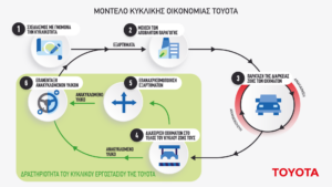Η κυκλικότητα λειτουργεί ως καταλύτης για την επίτευξη της ανθρακικής ουδετερότητας. Συμβάλλει στη μείωση των εκπομπών καθ’ όλη τη διάρκεια ζωής των οχημάτων, περιορίζει την εξάρτηση από πρώτες ύλες με υψηλό ανθρακικό αποτύπωμα, υποστηρίζει τον εξηλεκτρισμό και ενισχύει τις αλυσίδες εφοδιασμού. Μέσω του σχεδιασμού οχημάτων με έμφαση στην επαναχρησιμοποίηση, την ανακατασκευή, την ανακύκλωση και την αποδοτική χρήση υλικών, η Toyota επιτυγχάνει τη μείωση των εκπομπών σε ολόκληρη την αλυσίδα αξίας.
