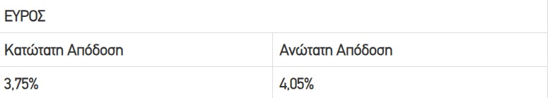 Το εύρος της απόδοσης, το οποίο καθορίστηκε από τους Συντονιστές Κυρίους Αναδόχους και εντός του οποίου οι Ειδικοί Επενδυτές θα υποβάλλουν αιτήσεις κάλυψης, είναι το ακόλουθο: