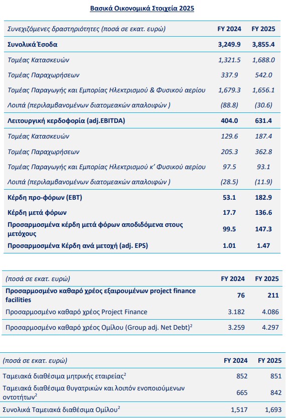 Όπως αναφέρεται στην ανακοίνωση, το 2025 αποτέλεσε για τον όμιλο ΓΕΚ ΤΕΡΝΑ μια ακόμη ιδιαίτερα σημαντική χρονιά, στη διάρκεια της οποίας ενισχύθηκε περαιτέρω το επιχειρηματικό και στρατηγικό του αποτύπωμα. Η εμβληματική παραχώρηση της Αττικής Οδού, η οποία ενοποιείται για πρώτη φορά για πλήρη χρήση για το 2025, και η έναρξη της παραχώρησης της Εγνατίας Οδού στο τέλος του έτους, αποτελούν καθοριστικά ορόσημα που θα συμβάλουν στη αύξηση των μακροχρόνιων ροών εσόδων και στην ενίσχυση της θέσης του ομίλου στον τομέα των παραχωρήσεων. Παράλληλα, το συνολικό ανεκτέλεστο υπόλοιπο έργων ανήλθε σε € 9,1 δισ., αντικατοπτρίζοντας την αυξημένη ανταγωνιστικότητα του Ομίλου σε έργα υψηλών απαιτήσεων και παρέχοντας σαφή ορατότητα εργασιών για τα επόμενα έτη.