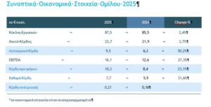 - EBITDA αυξημένο κατά +27,3 %, στα €16,1 εκατ. με αύξηση του περιθωρίου στο 18,4% σε σχέση με 14,8% το 2024.