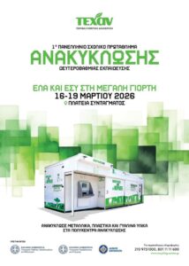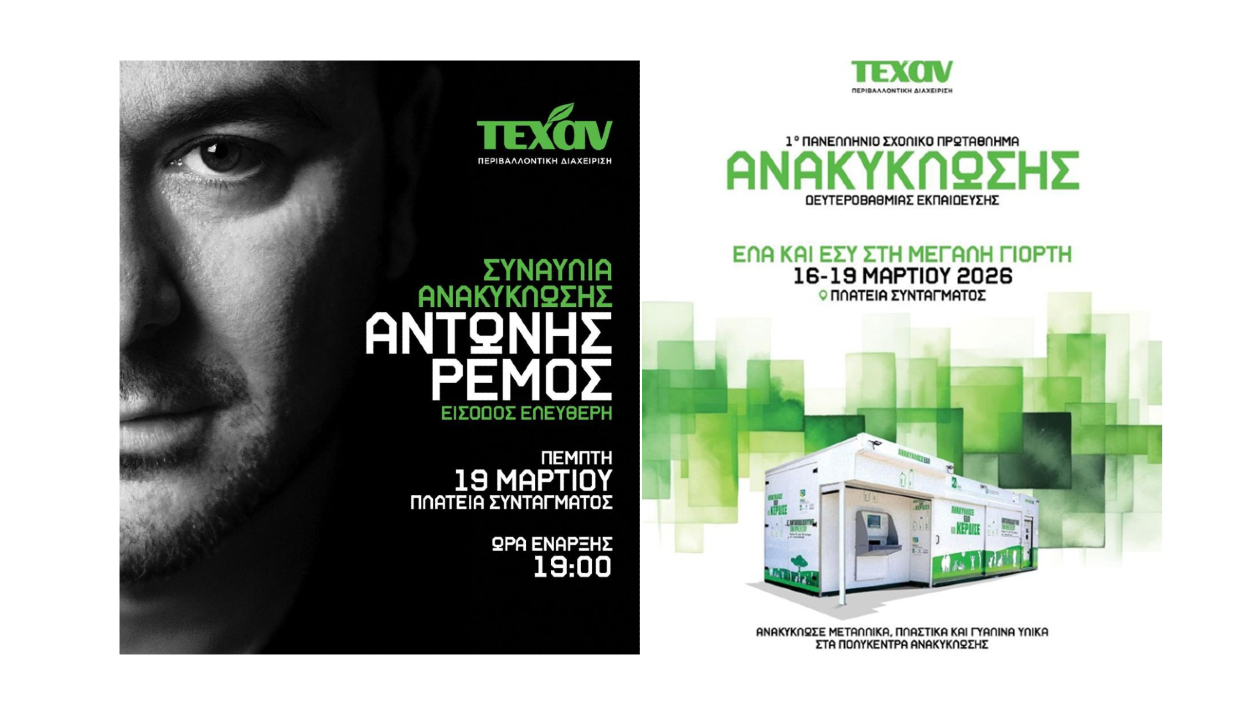 Μια μεγάλη γιορτή με περιβαλλοντικό μήνυμα ετοιμάζεται στην καρδιά της Αθήνας από την ΤΕΧΑΝ. Το 1ο Πανελλήνιο Σχολικό Πρωτάθλημα Ανακύκλωσης Δευτεροβάθμιας Εκπαίδευσης πραγματοποιείται από τις 16 έως τις 19 Μαρτίου 2026 στην Πλατεία Συντάγματος, μετατρέποντας το κέντρο της Αθήνας σε σημείο αναφοράς για την περιβαλλοντική δράση.
