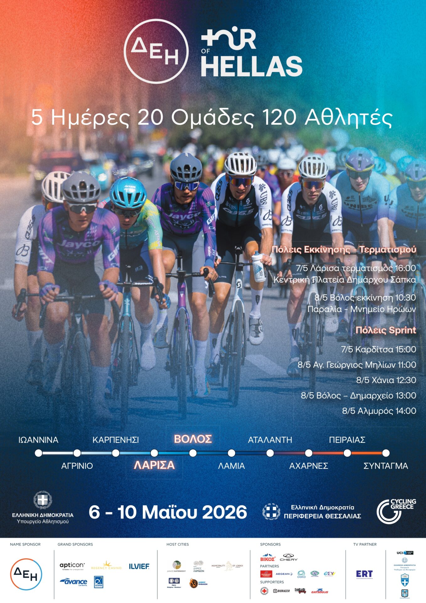 Με 120 pro riders, 20 ομάδες και διαδρομές που αναδεικνύουν τη φυσική ομορφιά, την ιστορία και τη δυναμική της χώρας, ο ΔΕΗ Tour of Hellas 2026 ταξιδεύει από τα Ιωάννινα, την Θεσσαλία έως την Αθήνα, μεταφέροντας την εικόνα της Ελλάδας σε όλο τον κόσμο.