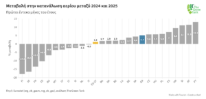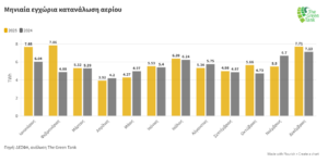 Από τα υπόλοιπα κράτη μέλη, 11 μείωσαν την κατανάλωσή τους με πρωτοπόρες τις Φινλανδία, Σουηδία και Γαλλία (-17.8%, -16.5% και -13.5% αντίστοιχα), ενώ 14 χώρες αύξησαν την κατανάλωσή τους με την Αυστρία και την Πορτογαλία στις χειρότερες θέσεις (+11.3% και +13.05% αντίστοιχα).
