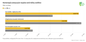 Στην τρίτη θέση εισαγωγών βρέθηκε η πύλη της Νέας Μεσημβρίας (απ’ όπου εισάγεται αζέρικο αέριο μέσω του αγωγού TAP) με 1.04 TWh και αύξηση 13.7% σε σχέση με τον Νοέμβριο. Μηδενικές παρέμειναν οι εισαγωγές από την πέμπτη πύλη εισόδου στους Κήπους όπως συμβαίνει από τον Ιανουάριο του 2024.