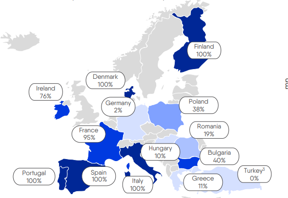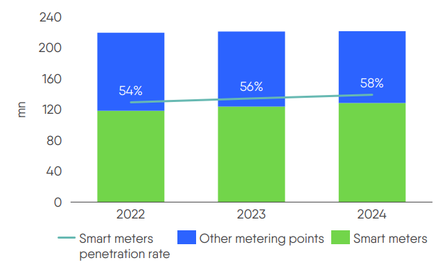 Οι χώρες που εξετάστηκαν περιλαμβάνουν τη Βουλγαρία, τη Δανία, τη Φινλανδία, τη Γαλλία, τη Γερμανία, την Ελλάδα, την Ουγγαρία, την Ιρλανδία, την Ιταλία, την Πολωνία, την Πορτογαλία, τη Ρουμανία και την Ισπανία. Πέραν του χαμηλού ποσοστού ενσωμάτωσης έξυπνων μετρητών, ενδεικτική είναι και η αργή αύξηση του ποσοστού αυτού τα τελευταία χρόνια. Ειδικότερα, από το 2022 έως το 2024 η ετήσια αύξηση του ποσοστού ήταν μόλις 2%.