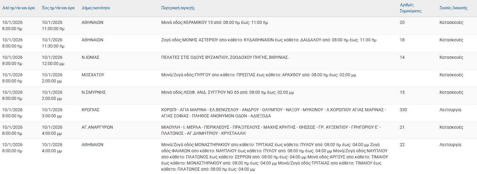 Πολλές περιοχές της Αττικής βιώνουν σήμερα προγραμματισμένες διακοπές ρεύματος από τον ΔΕΔΔΗΕ, ενώ αρκετές θα βιώσουν διακοπές ρεύματος και αύριο, Κυριακή. Μεταξύ αυτών είναι ο δήμος Αθηναίων και οι περιοχές Νέας Ιωνίας, Μοσχάτου, Νέας Σμύρνης, Κρωπίας, Αγίων Αναργύρων, Γλυφάδας, Παλλήνης, Καλλιθέας, Περιστερίου, Χαϊδαρίου, Ηρακλείου και Αμαρουσίου.