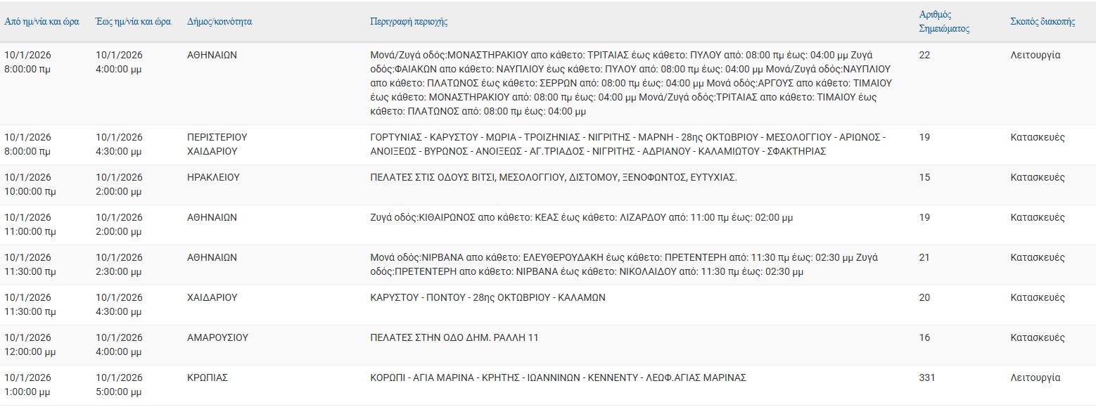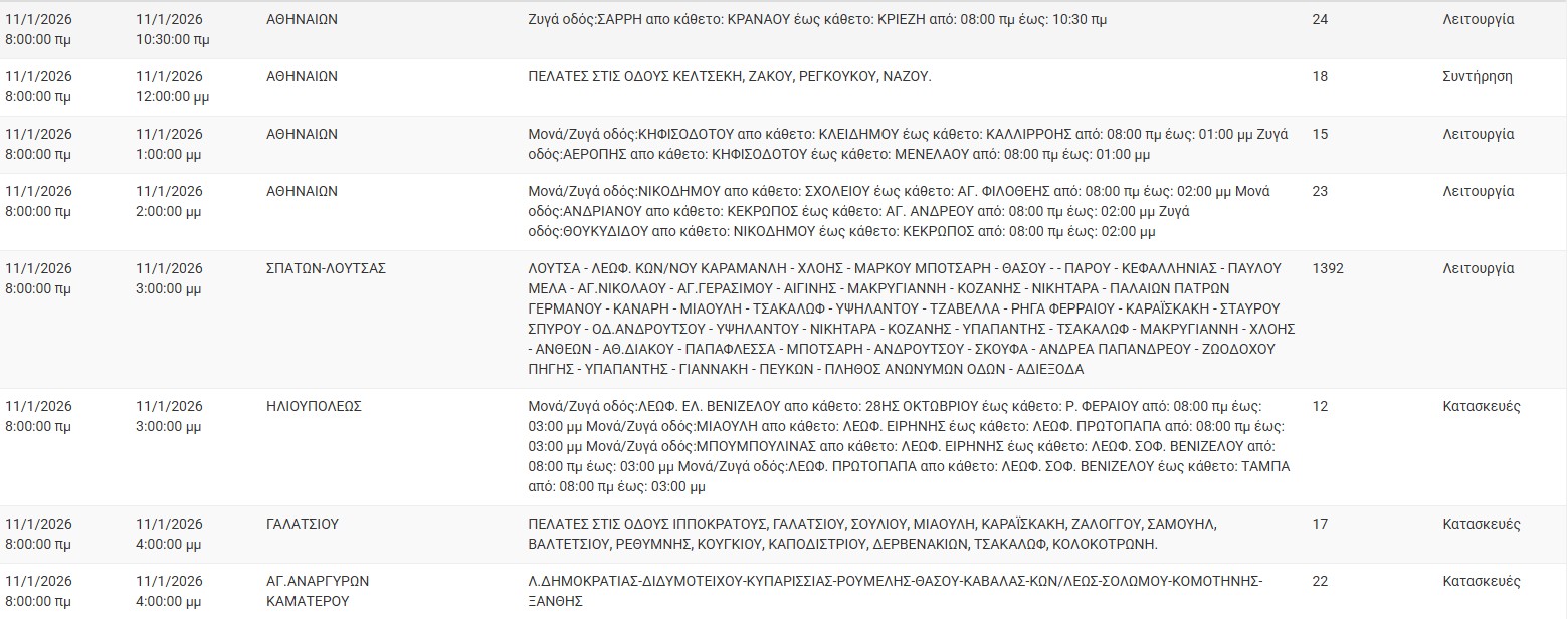 Στην ιστοσελίδα του ο ΔΕΔΔΗΕ αναφέρει: «H ΔΕΔΔΗΕ Α.Ε. καταβάλλει διαρκείς προσπάθειες για τη μεγαλύτερη δυνατή αξιοπιστία των δικτύων και εγκαταστάσεων διανομής ηλεκτρικής ενέργειας, καθώς και για τη βελτίωση της ποιότητας της παρεχόμενης ενέργειας. Για το λόγο αυτό προγραμματίζει και υλοποιεί καθημερινά έργα συντήρησης, ενίσχυσης ή αναβάθμισης δικτύων, τα οποία απαιτούν προσωρινές διακοπές της ηλεκτροδότησης. Προκειμένου να προγραμματίσετε τις εργασίες σας και να ελαχιστοποιηθεί η όχλησή σας, στον ακόλουθο πίνακα, μπορείτε να ενημερωθείτε για τις περιοχές και τις ώρες προγραμματισμένων διακοπών ηλεκτροδότησης. Προσοχή: Ενώ καταβάλλεται κάθε προσπάθεια για τη συντομότερη επανηλεκτροδότηση, εντούτοις, επιβάλλεται μεγάλη προσοχή, θεωρώντας ότι σε όλη την προγραμματισμένη διάρκεια διακοπής, οι αγωγοί είναι υπό τάση».
