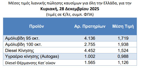 Δείτε περισσότερα: Στο 1,726 ευρώ το λίτρο έπεσε η βενζίνη, στο 1,130 το πετρέλαιο θέρμανσης